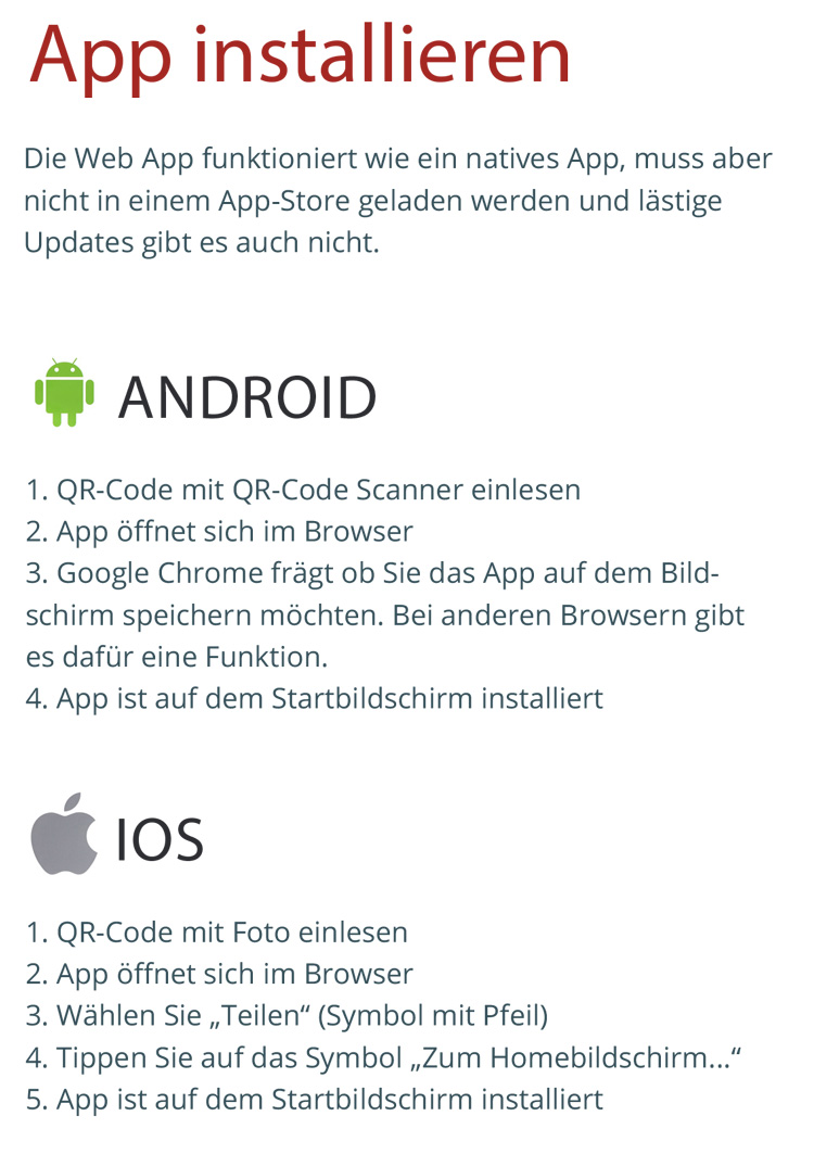 Deine App ist sofort bei Aufruf des QR-Codes einsatzbereit. Natürlich ist auch der QR Code in Deiner App präsent.